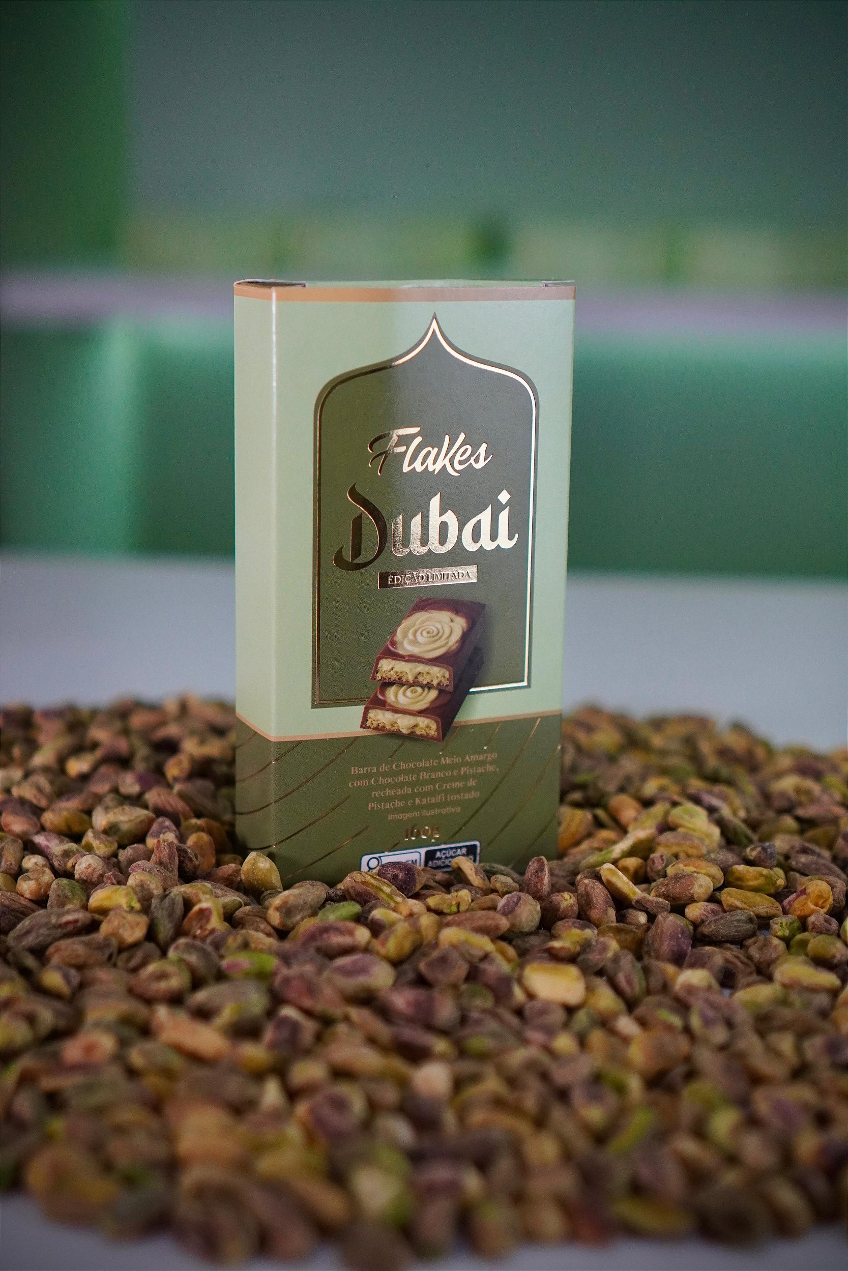 A versão da Barra mais desejada da internet disponível a você. “Barra Dubai Flakes” Chocolate Meio Amargo e Chocolate Branco com Pasta pura de Pistache em um molde de Rosas. Recheada com Creme de Pistache Flakestacchio e Kataifi crocante.
